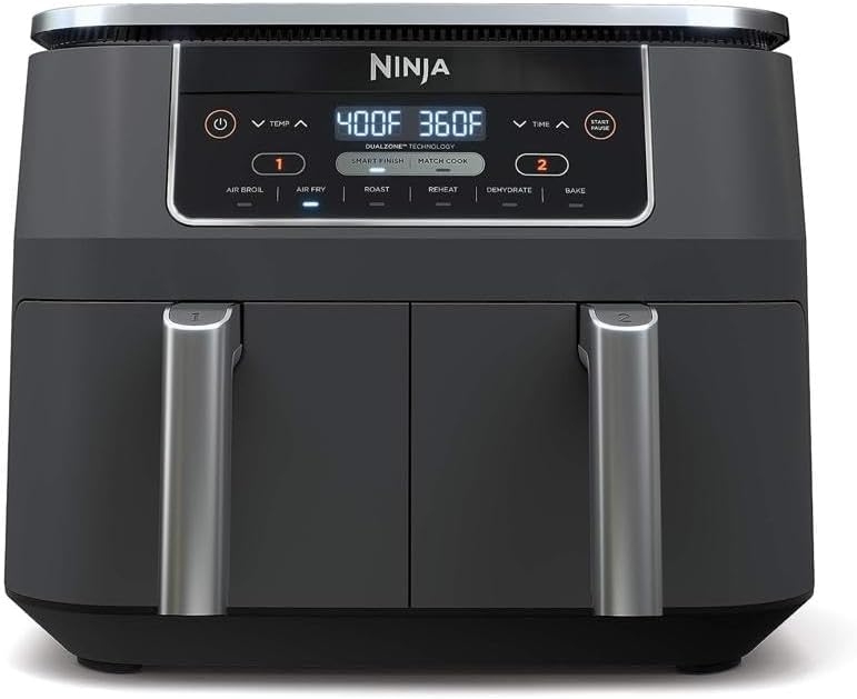 The Ninja Foodi 6-in-1 8-qt. 2-Basket Air Fryer with Dual Zone Technology. The first air fryer with 2 independent baskets that let you cook 2 foods at once, not back-to-back like a traditional single-basket air fryer. Dual Zone Technology’s Smart Finish feature intelligently manages to cook so both foods finish at the same time.